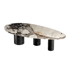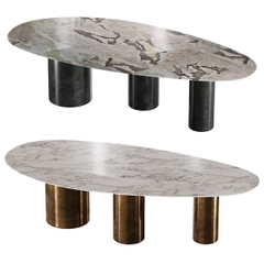 Bàn ăn Lagos được thiết kế với 3 chân trụ tròn thẳng đứng so le, được làm từ inox mạ vàng nguyên khối hoặc mạ titan tạo nên điều hòa cân đối và vững chắc. Mặt bàn ceramic tròn theo hình elips với kích thước vừa phải kết hợp những đường vân tự nhiên của đá ceramic hình thành tạo thêm điểm nổi bật và tô thêm điểm nhất ngay tại bề mặt bàn. Với thiết kế độc đáo và tinh tế, bàn ăn Lagos sẽ là điểm nhấn tuyệt vời cho không gian ăn uống của bạn.