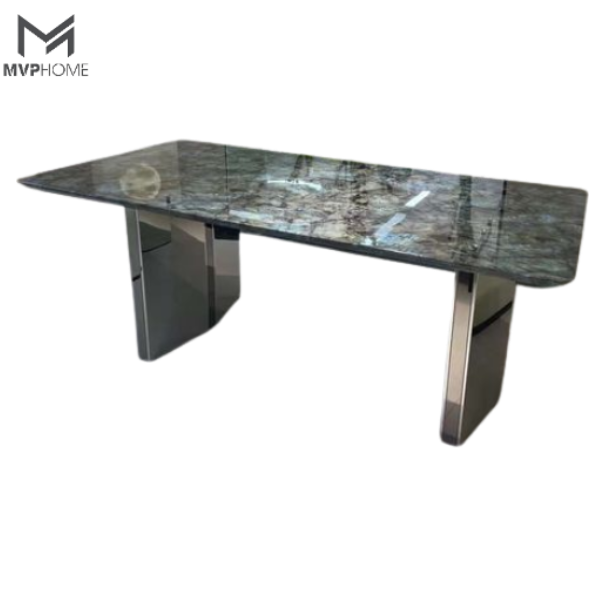 Bên cạnh đó, chân bàn cũng được làm từ bộ thép không rỉ, tạo nên sự chắc chắn và bền bỉ. Với thiết chân bàn bằng thép sẽ là lựa chọn hoàn hảo với bàn marble tạo nét đẹp riêng và điểm nhấn riêng cho sản phẩm.