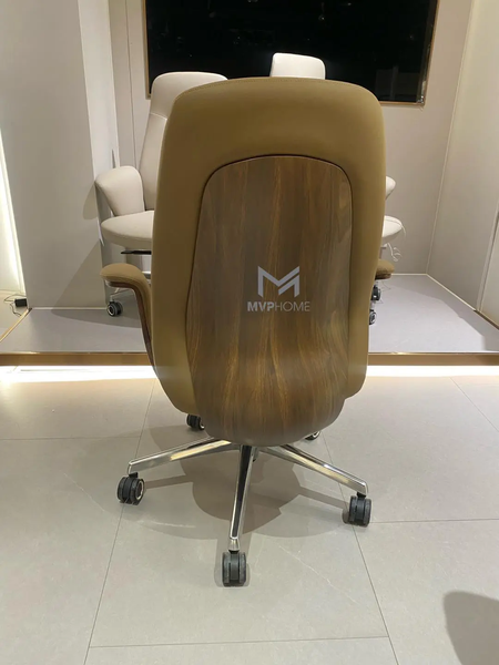 Không giống như các mẫu ghế văn phòng thông thường, chiếc ghế này được thiết kế với mặt ốp gỗ ở lưng ghế, tạo nên vẻ đẹp sang trọng, đẳng cấp. Chất liệu gỗ tự nhiên không chỉ tăng độ bền mà còn làm nổi bật sự khác biệt trong thiết kế, giúp chiếc ghế trở thành tâm điểm trong mọi văn phòng.