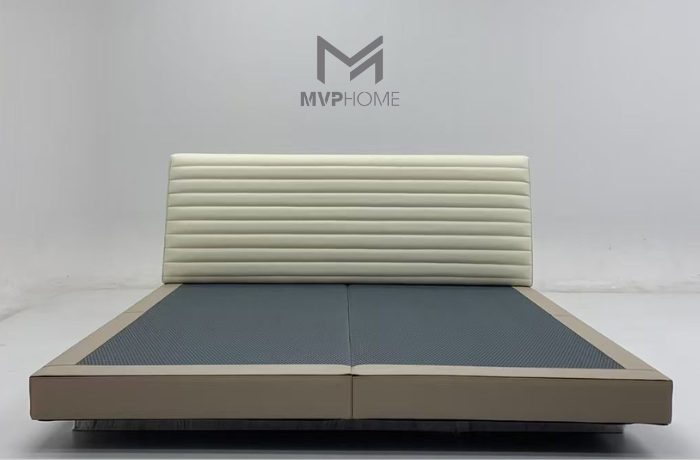 Thấp sàn, thanh lịch và không cầu kỳ, chiếc giường mang đậm phong cách tối giản nhưng vẫn giữ được nét tinh tế và sang trọng cần có. Thiết kế này loại bỏ hoàn toàn những chi tiết rườm rà, tập trung vào những đường nét gọn gàng và hình khối rõ ràng, mang đến cảm giác thoáng đãng và nhẹ nhàng cho không gian phòng ngủ. Sự tối giản ở đây không đồng nghĩa với đơn điệu, bởi từng chi tiết đều được chăm chút kỹ lưỡng, từ màu sắc hài hòa đến chất liệu bọc mềm mại, đảm bảo vừa đẹp mắt vừa tiện nghi. Kiểu giường thấp sàn còn giúp căn phòng trở nên rộng rãi và hiện đại hơn, đồng thời mang đến sự an toàn và thoải mái trong quá trình sử dụng. Đây là lựa chọn lý tưởng cho những ai yêu thích phong cách nội thất hiện đại, ưu tiên sự gọn gàng, tinh tế nhưng vẫn đầy đủ tiện nghi cho cuộc sống hàng ngày.