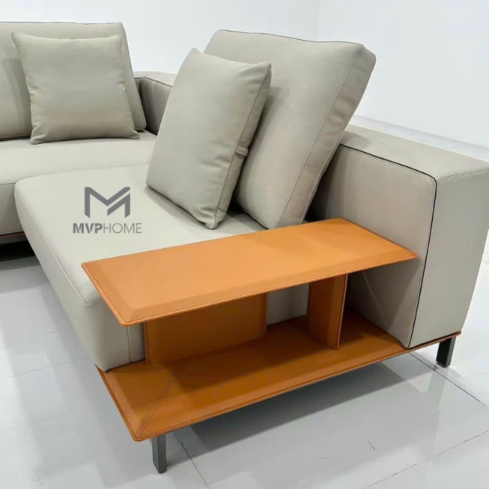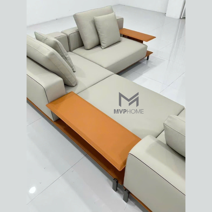 Điểm nhấn đặc biệt của Brera chính là các kệ gỗ ốp da tích hợp ở tay vịn và mặt sau, mang lại sự tiện lợi và đẳng cấp cho không gian sống. Không cần thêm bàn phụ, bạn vẫn có thể đặt sách, cốc cà phê hay đồ trang trí ngay bên cạnh mình – một trải nghiệm sống tối giản nhưng không kém phần tinh tế.