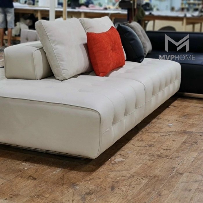 Là một chiếc sofa góc thuộc thương hiệu Minotti nổi tiếng toàn cầu nên sản phẩm cũng được khá nhiều điểm chú trọng tại nơi sản xuất. Sofa được kết hợp giữa 2 tone màu trắng và đen tạo nên một sự tương phản và sự hài hoà nhất định cho không gian sống của bạn.