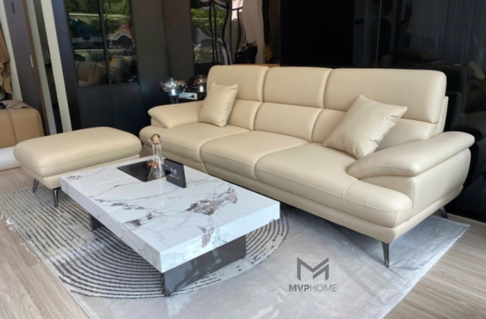Sofa da Ý Milan kết hợp với bàn trà mặt đá nâng tầm không gian sống