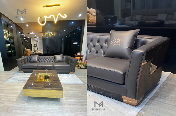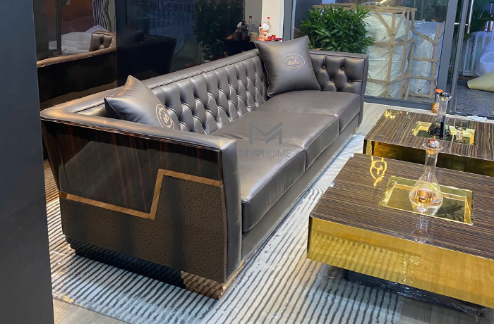 Sofa SF090 không chỉ là một sản phẩm nội thất, mà còn là một tác phẩm nghệ thuật được thiết kế độc quyền. Sự kết hợp giữa các đường nét thẳng và đường cong mềm mại, cùng với các chi tiết kim loại mạ vàng hoặc đồng tinh xảo ở phần chân và viền, tạo nên một tổng thể hài hòa và sang trọng. Bạn sẽ không tìm thấy một chiếc sofa nào khác có thể tái hiện được vẻ đẹp và sự tinh tế này. Đây là lựa chọn hoàn hảo cho những gia chủ muốn khẳng định cá tính và gu thẩm mỹ riêng biệt, tránh xa sự rập khuôn, đại trà.