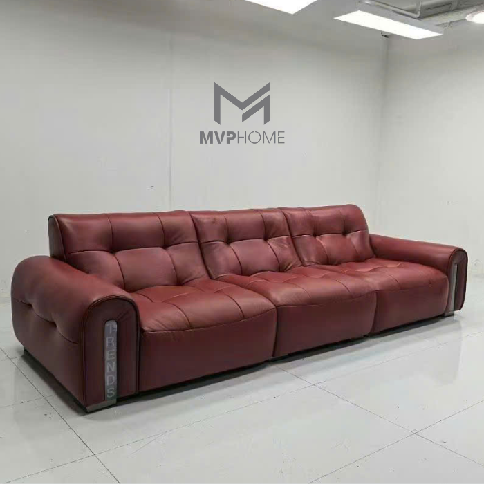 Sản phẩm được bọc da nhập khẩu cao cấp, bề mặt mềm mại, không bong tróc và dễ vệ sinh. Phần đệm mút dày dặn, có độ đàn hồi cao, mang đến cảm giác thoải mái cho cả ngồi và nằm thư giãn. Khung gỗ chắc chắn giúp sofa có tuổi thọ lâu dài, đồng hành cùng gia đình trong nhiều năm.